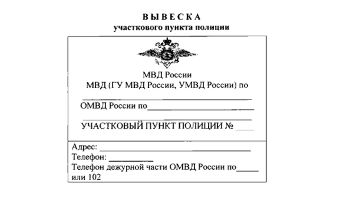 Персональную ответственность за состояние участкового пункта полиции несет начальник территориального органа.