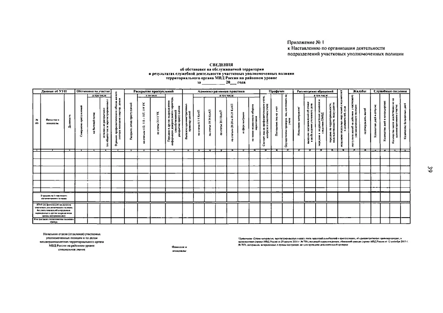 Приложение № 1 к Наставлению по организации деятельности подразделений участковых уполномоченных полиции